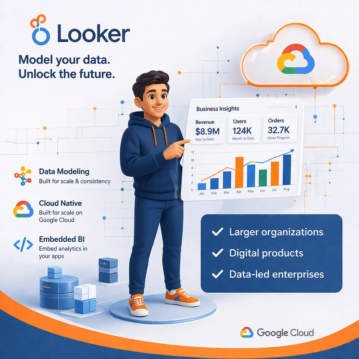 Looker is different from both Power BI and Tableau in one major way: it is not only a dashboard tool. Google Cloud positions it as a platform for BI, data applications, and embedded analytics. That makes it especially attractive for businesses that want